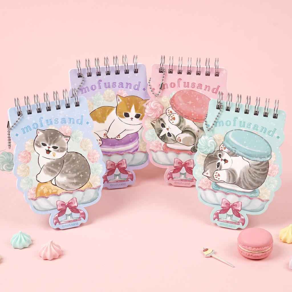 Take notes the cutest way possible with this Mofusand Cat Notepad! Each mini spiral pad features a chubby cat lounging on a pastel macaron, surrounded by dreamy dessert details. With themed pages that match the cover and a dangling charm for extra flair, itβs perfect for jotting quick thoughts, to-do lists, or little doodles on the go. Choose from four whimsical designs!