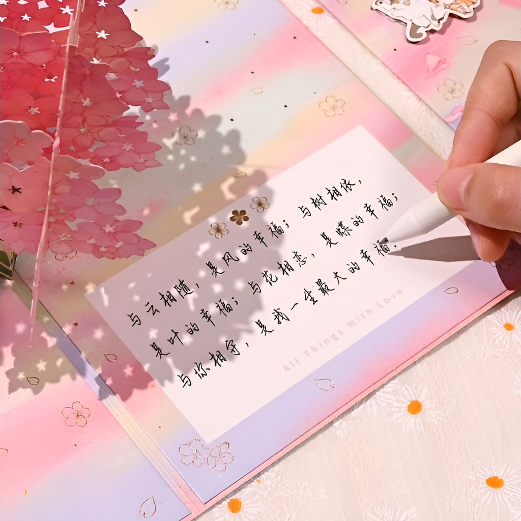 ✔ Stunning 3D Pop-Up Tree – A full cherry blossom tree unfolds with intricate petal layers 🌸