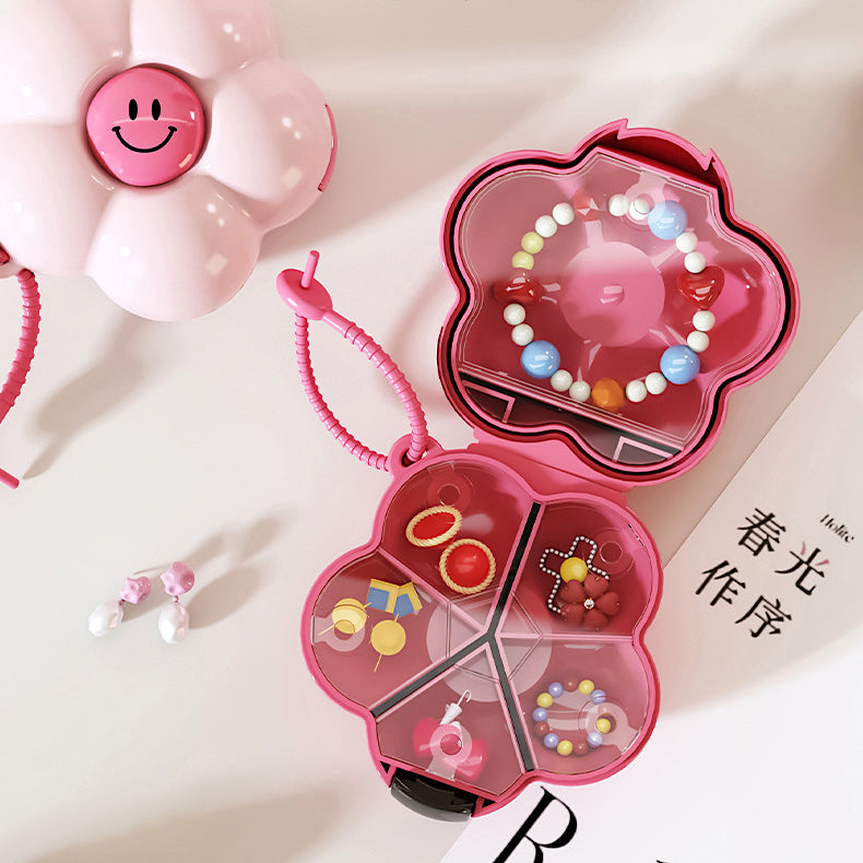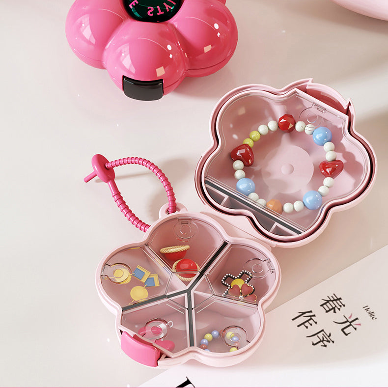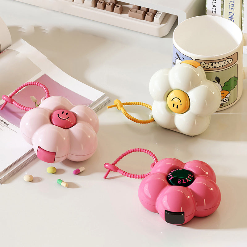 Stay organized with a smile using the Smiley Bloom Pill Box! Shaped like a happy flower, this adorable case opens to reveal 5 small compartments on one side and a larger one on the other—perfect for pills, vitamins, or tiny treasures like jewelry and hairpins. Each section has its own secure lid, plus a snap-close outer clip to keep everything safe while on the go. Available in soft pink or bright yellow designs, it’s a cheerful way to carry your daily essentials. 💖🌸