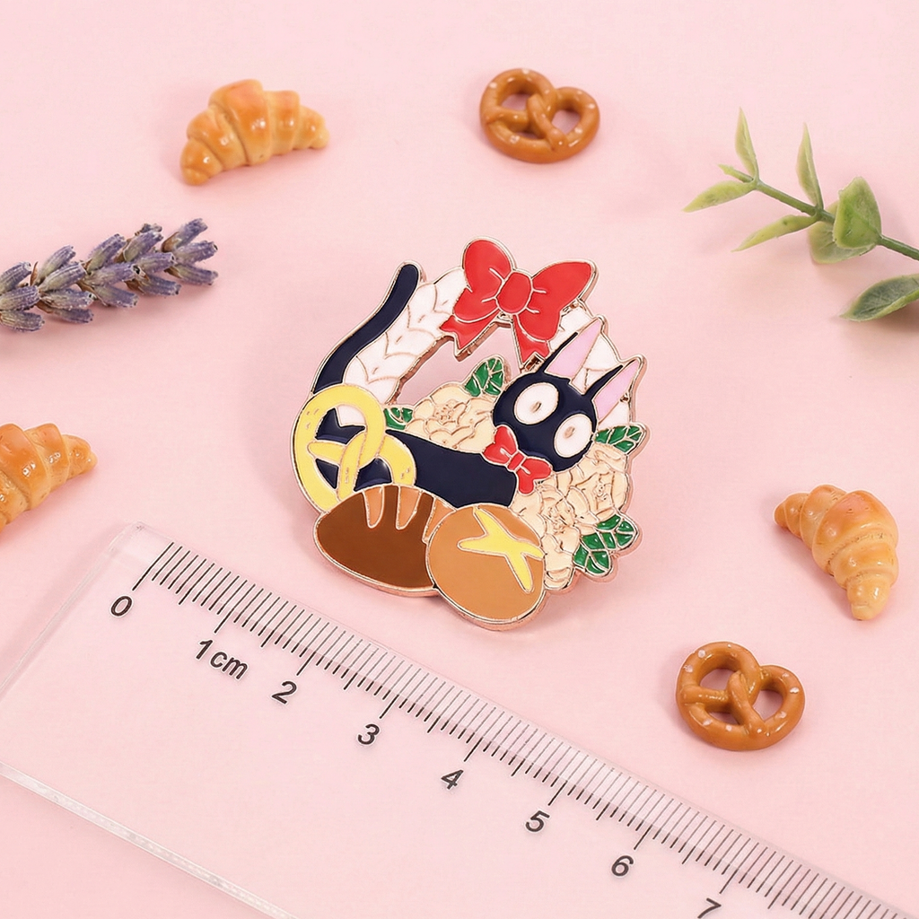 Carry a piece of Ghibli magic wherever you go with the Kiki’s Delivery Service Enamel Pin! Featuring Jiji nestled sweetly inside a wreath of golden bread, this glossy pin captures the cozy, whimsical charm of Kiki’s Delivery Service. With a durable finish and secure butterfly clutch backing, it’s perfect for clipping to jackets, backpacks, or tote bags for a dash of everyday enchantment. 🥐✨