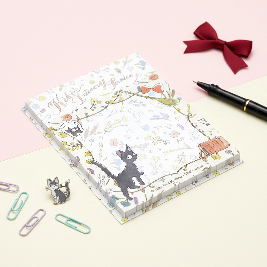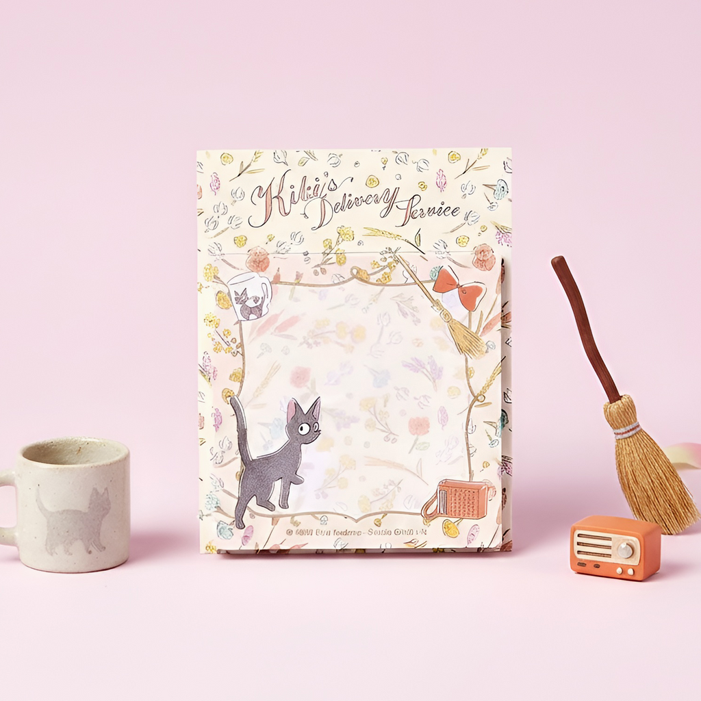 Soar through your day with a touch of Studio Ghibli magic using our Kiki's Delivery Service Sticky Notes! ✨ Featuring the adorable Jiji the cat and delicate floral designs inspired by the enchanting world of Kiki's Delivery Service, these sticky notes are perfect for jotting down to-do lists, reminders, or quick thoughts.