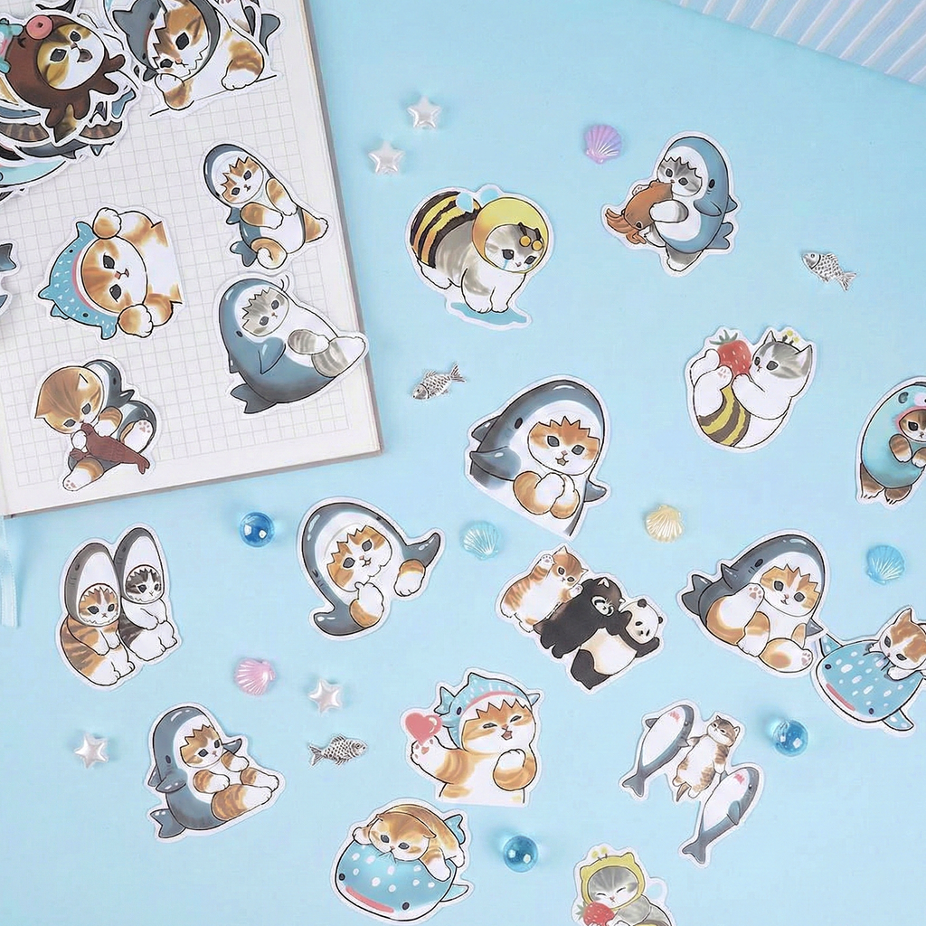 Mofusand Cat Stickers - Set of 50 - Little Sharks