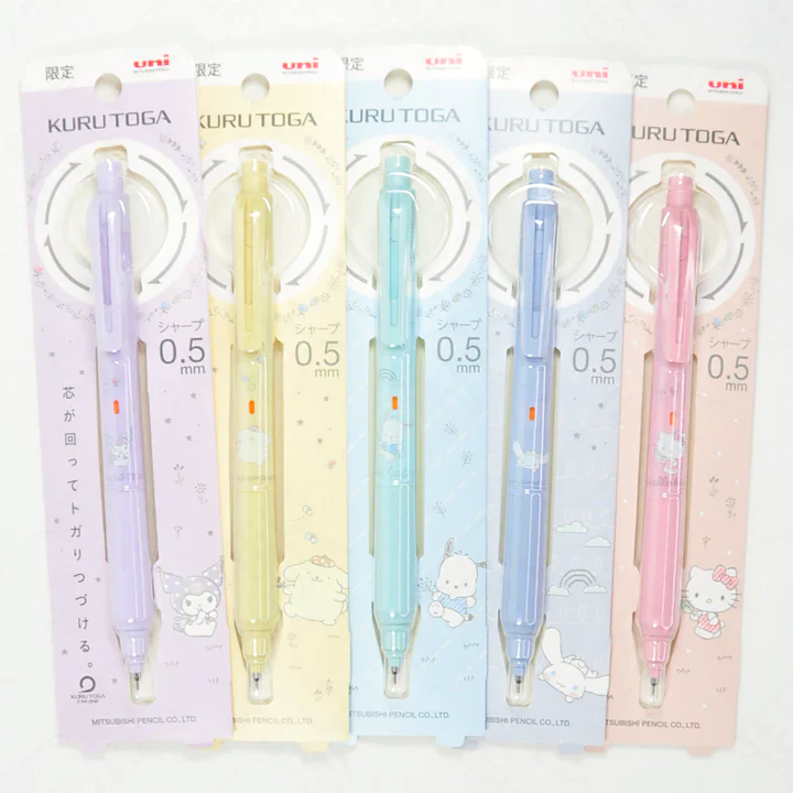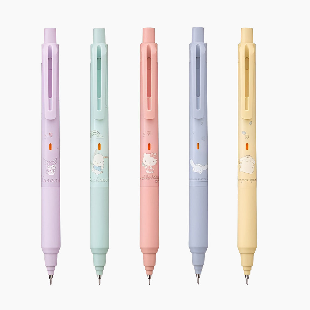 Experience the perfect marriage of advanced technology and adorable aesthetics with the Kuru Toga x Sanrio Characters Mechanical Pencil. Each pencil features a smooth, pastel-colored barrel decorated with sweet, subtle artwork of your favorite Sanrio friend. This is more than just a cute design: it's equipped with the revolutionary Kuru Toga engine, which automatically rotates the $0.5 \text{ mm}$ HB lead as you write. This ingenious system ensures the tip is always a sharp, consistent cone, delivering clear, wobble-free lines without sharpening. With its comfortable, matte body and a convenient eraser under the clip cap, this pencil is essential for students and stationery enthusiasts alike!
