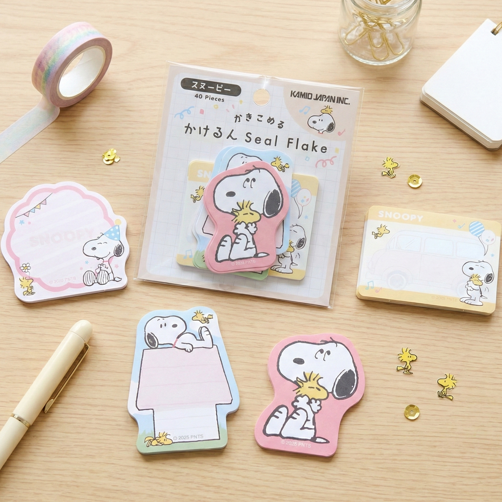 Add a personal touch to your planners and letters with these adorable "Kakeru-n" write-on stickers! This limited edition beige collection features Snoopy and Woodstock in cozy, heartwarming scenes—from Snoopy napping on his iconic red doghouse to celebrating with party hats and balloons. Unlike standard stickers, these are crafted from high-quality paper with a special matte finish, allowing you to easily jot down dates, reminders, or sweet "thinking of you" messages with your favorite pen or pencil. Whether you're labeling a gift or decorating a journal spread, these die-cut gems bring a touch of classic Peanuts nostalgia to every page! 🎈☁️