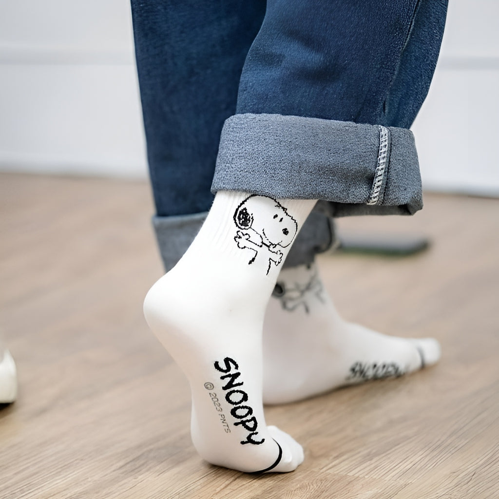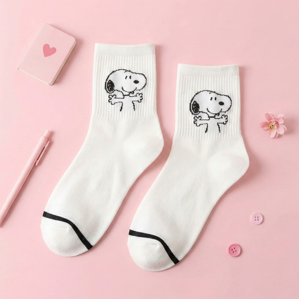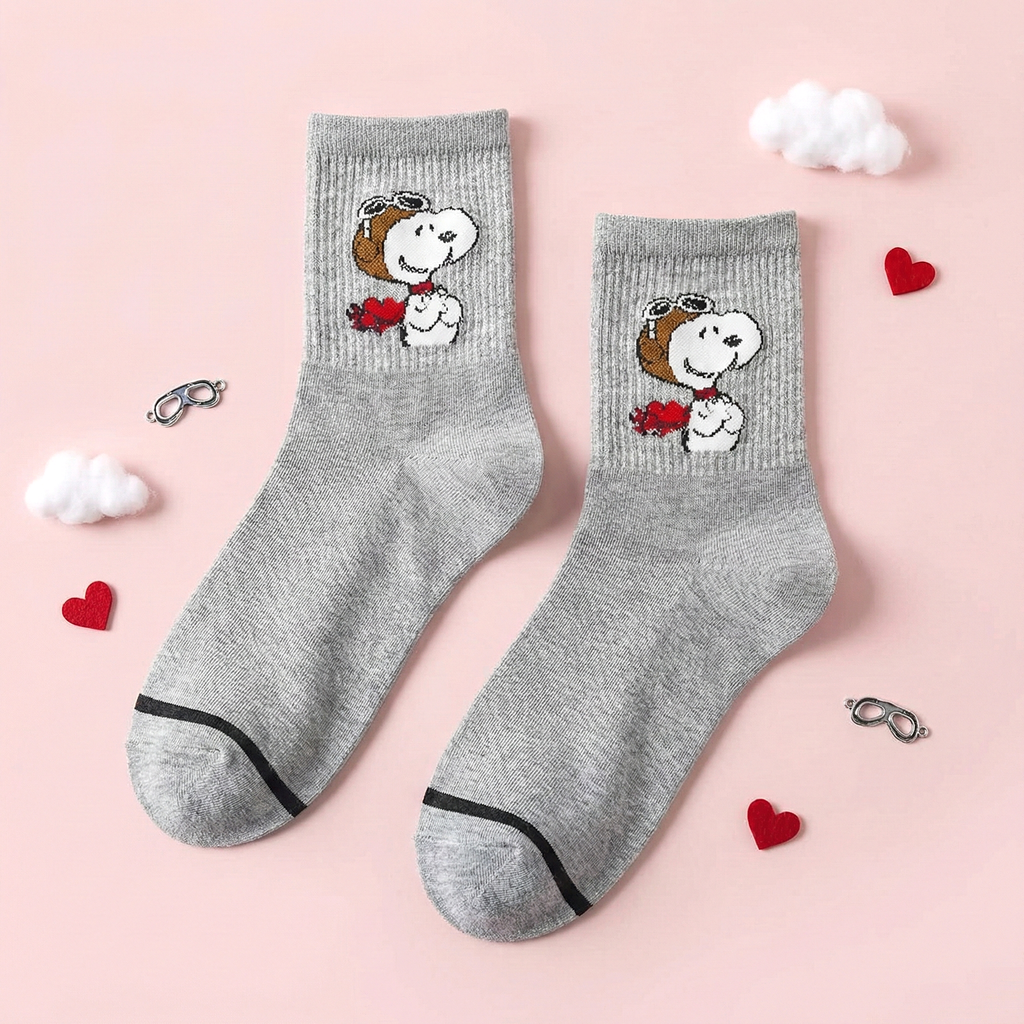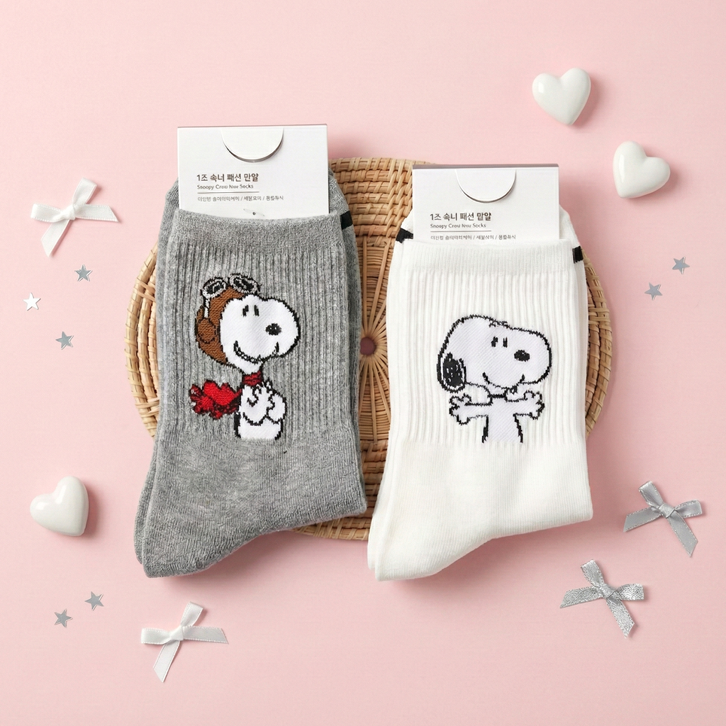 Step into comfort and nostalgia with our Snoopy Ribbed Crew Socks, the perfect way to add a dash of classic charm to your daily look! These high-quality socks feature the world’s favorite beagle in two delightful, high-contrast designs: a cozy "Snoopy Hug" on crisp white or a brave "Pilot Snoopy" on sophisticated heather gray. Crafted with a premium ribbed texture that hugs your ankles just right, these socks look equally adorable peeking out from cuffed jeans or paired with your favorite sneakers for a clean, minimalist aesthetic. Whether you’re lounging at home or out on an adventure, these soft, breathable companions are ready to keep your feet cozy and stylish!