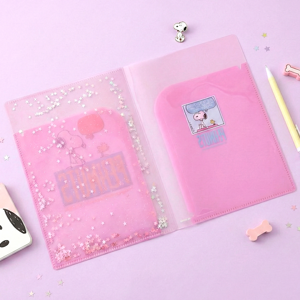 Get ready to dazzle your desk with this limited edition Peanuts Snoopy Glitter Folder! With a vibrant pink background, floating star sequins, and double-sided comic strip cuteness, it brings sparkle, humor, and iconic charm to your school or office days. Shake it, smile, and stay organized in style! ๐๐