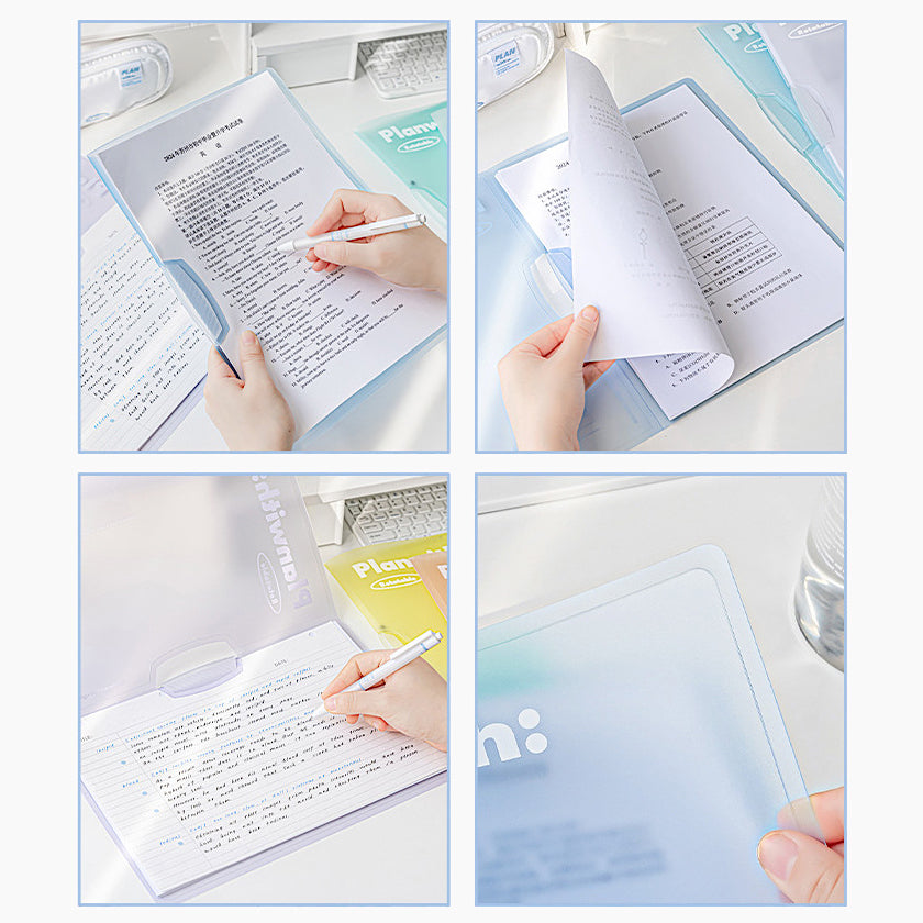 Organize your notes in style with this ClearView Plan With Me Folder! Made from durable PP material, it’s flexible, waterproof, and built to keep your papers safe. The strong sliding clip keeps your A4 sheets secure, while the flat-lay design lets you write directly inside. Choose from 6 soft pastel shades to brighten up your study or workspace. 🌸