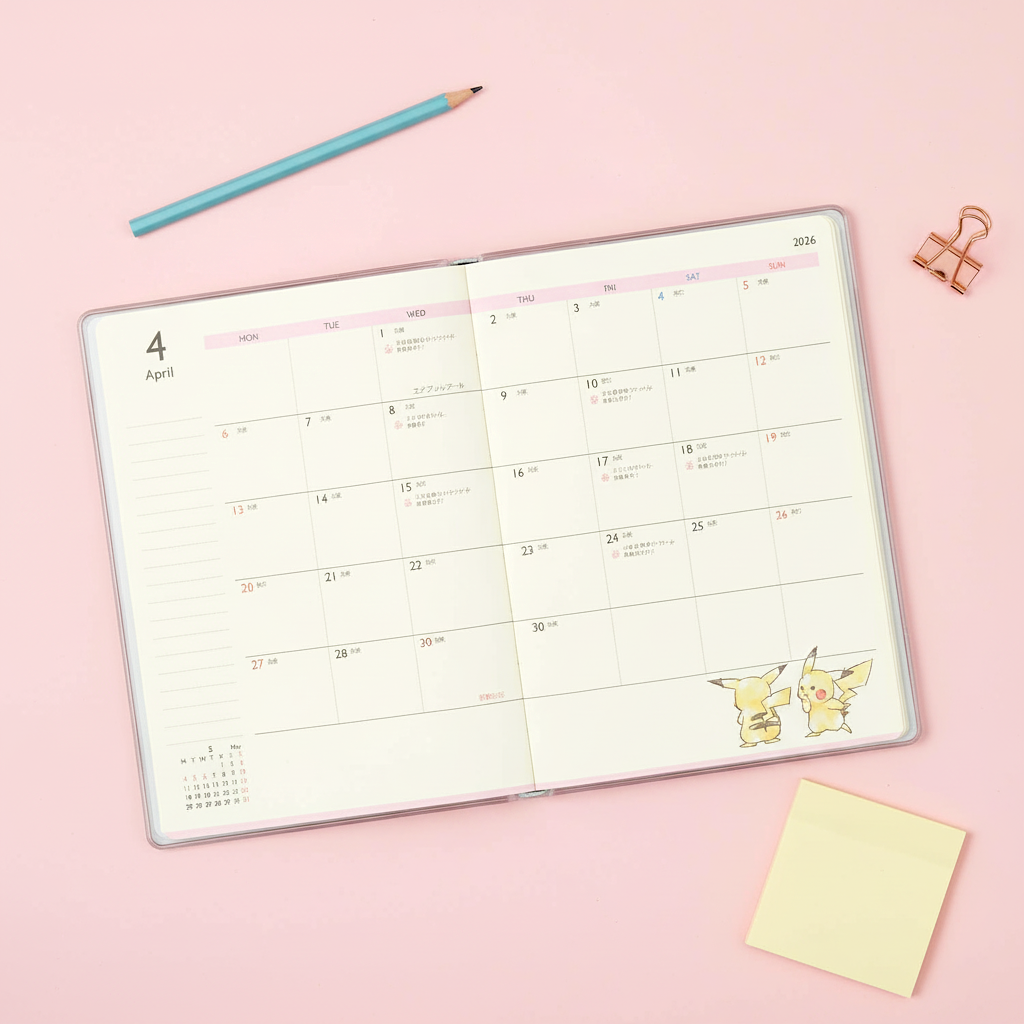 Brighten every day of 2026 with Pikachu by your side! This adorable schedule book features a playful pattern of Pikachu in various poses with Poké Balls scattered across a crisp white cover. Inside, the charm continues with monthly calendar spreads, dotted note pages, and a yearly overview to keep all your plans in one place. Each page features cheerful Pikachu illustrations that make organizing fun and motivating. A transparent PVC cover keeps everything protected, so your planner stays cute and clean all year long!