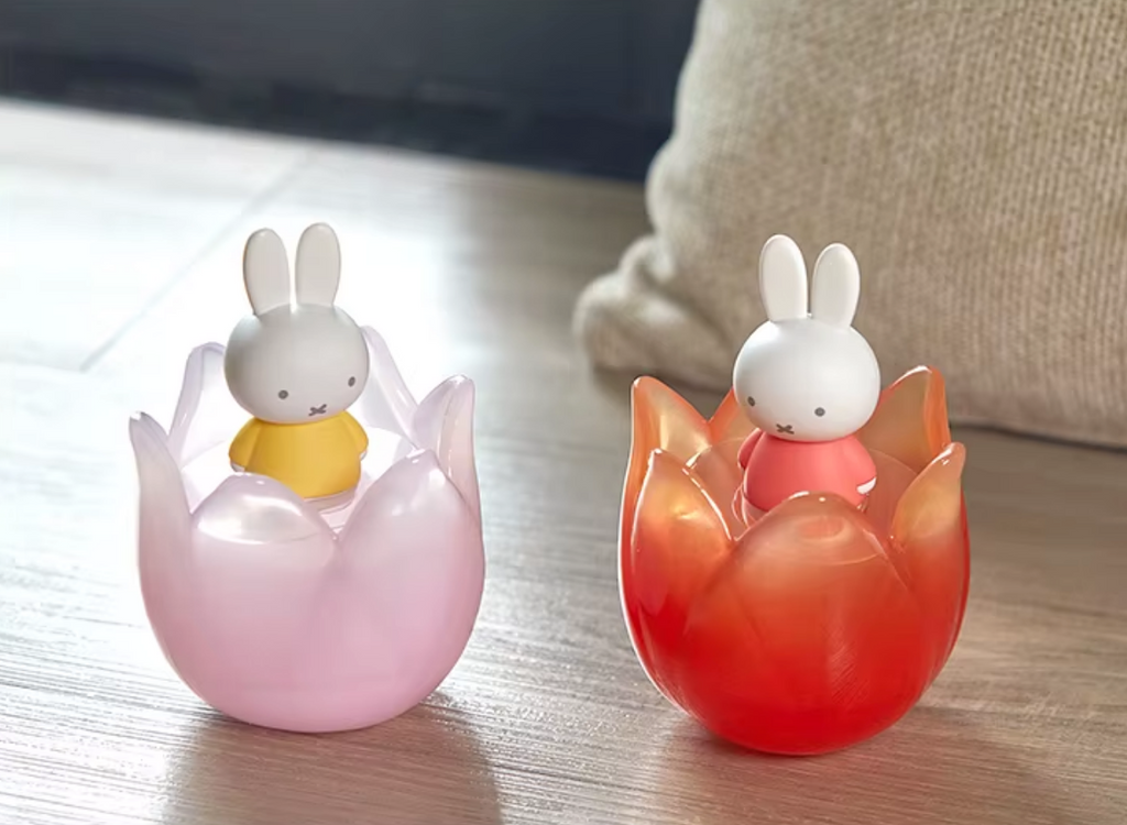 Welcome spring to your desk with the exquisite Miffy Tulip Treasure Pot Surprise Box! This collection features beautiful, semi-translucent acrylic tulip holders, each concealing a charming, removable Miffy figure. Unbox one of 6 delightful regular designs or hunt for the ultimate catch: one of the 3 rare, secret designs! The tulip pot itself serves as a lovely holder for jewelry, lipstick, or stationery, and even features a clever cut-out base to double as a tiny, whimsical plant pot.