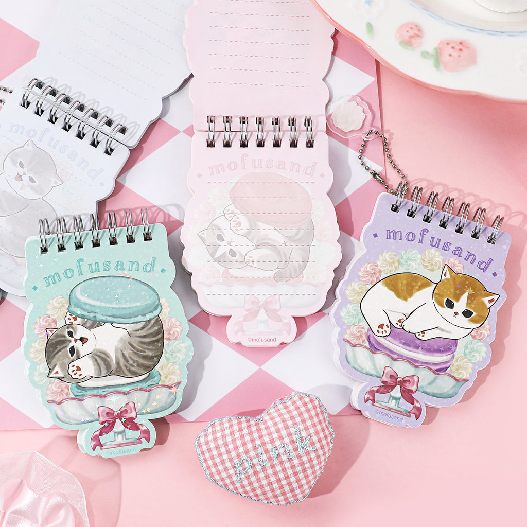 Take notes the cutest way possible with this Mofusand Cat Notepad! Each mini spiral pad features a chubby cat lounging on a pastel macaron, surrounded by dreamy dessert details. With themed pages that match the cover and a dangling charm for extra flair, itβs perfect for jotting quick thoughts, to-do lists, or little doodles on the go. Choose from four whimsical designs!
