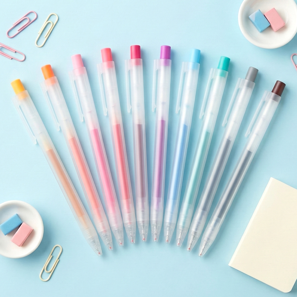 The beloved MUJI Gel Ink Pen now comes in a sleek frosted body with a retractable tip for even greater convenience! Known for its effortless smooth writing experience, this pen features quick-drying, water-based ink that prevents smudging and bleed-through—perfect for left- and right-handed writers alike.