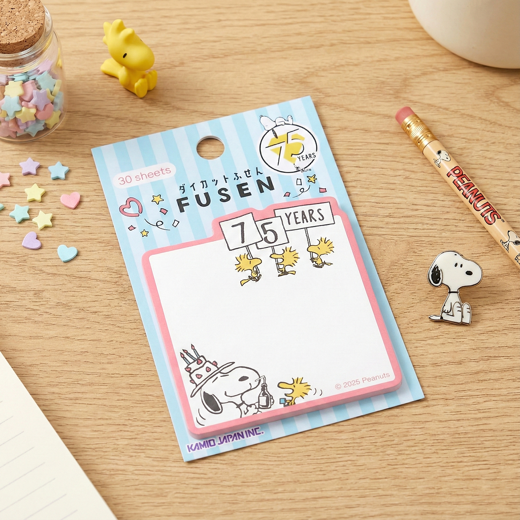 โ Limited 75th Anniversary Item โ A rare, commemorative sticky note set perfect for dedicated Peanuts collectors. ๐