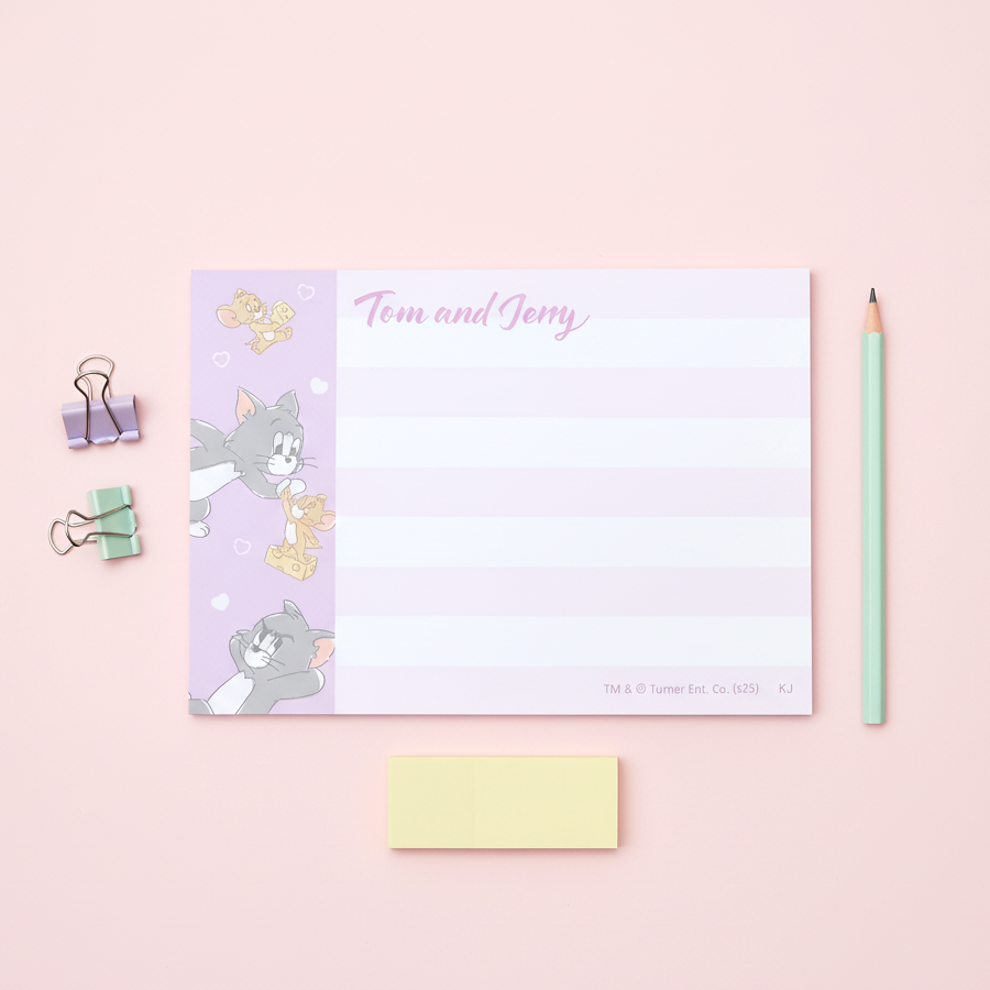 Sweet, simple, and filled with friendship β this Tom & Jerry Hearts Memo Pad will instantly brighten your desk! Each pastel-themed page features Tom and Jerry sharing smiles surrounded by tiny hearts. With 70 sheets (half lined, half blank), thereβs plenty of space for cute notes, love messages, or daily reminders. Its compact size makes it perfect to slip into your pencil case or purse for notes on the go. π